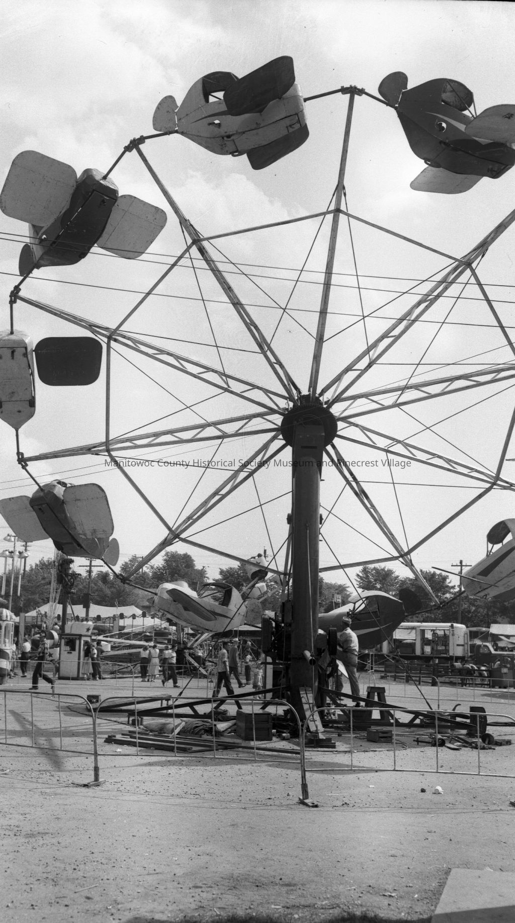Manitowoc County Fair; midway rides. Photograph taken in August 1963.