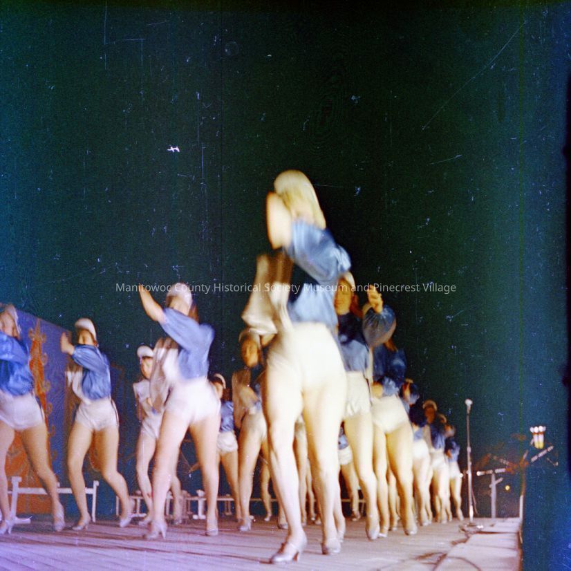 Manitowoc County Fair; chorus line of dancers. Photograph taken in 1954.