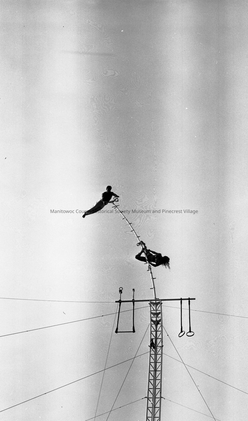 Manitowoc County Fair; high wire act. Photograph taken in August 1953.