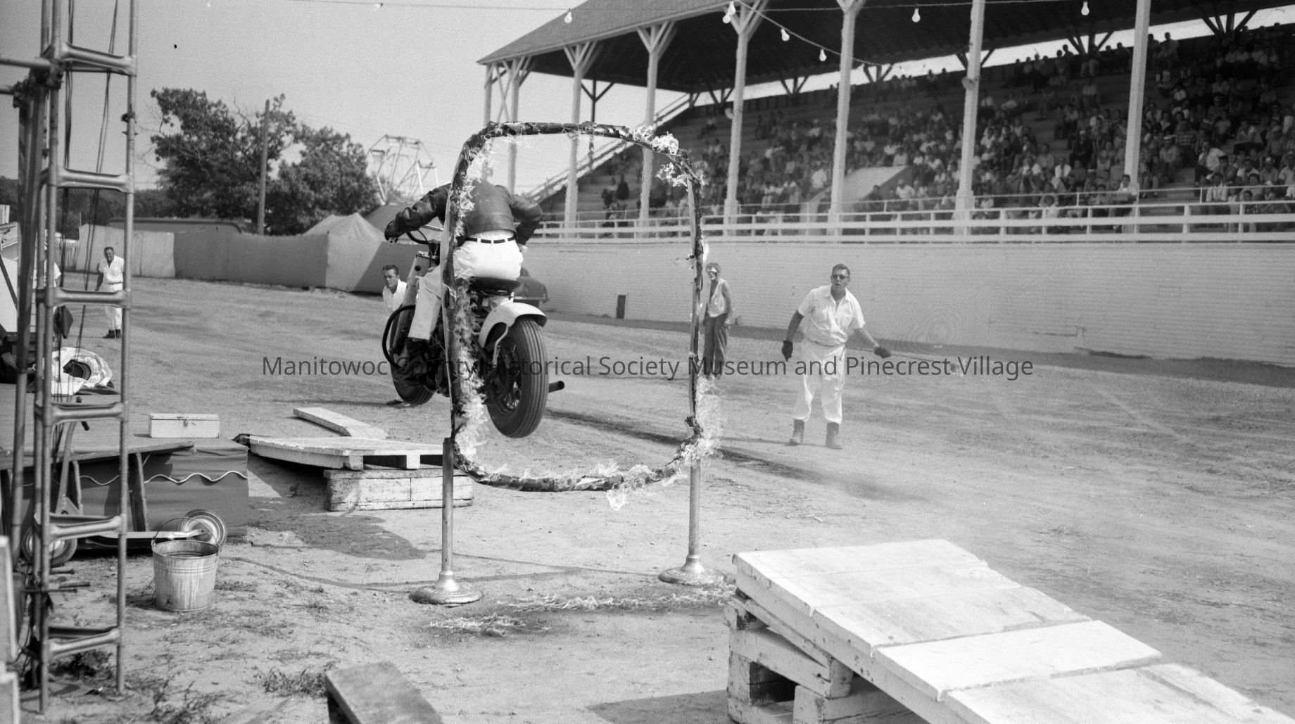 Manitowoc County Fair; Devil Drivers thrill show. Photograph taken in August 1953.