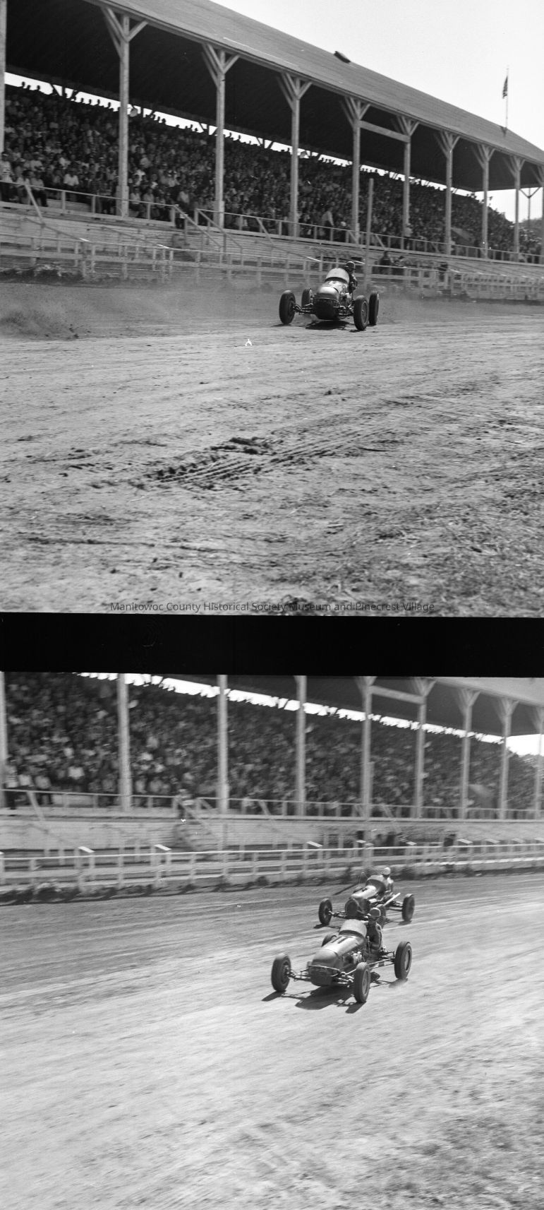 Manitowoc County Fair; open-wheel auto race. Photograph taken in August 1953.