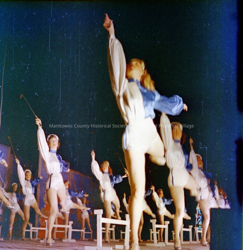 Manitowoc County Fair; chorus line of dancers. Photograph taken in 1954.