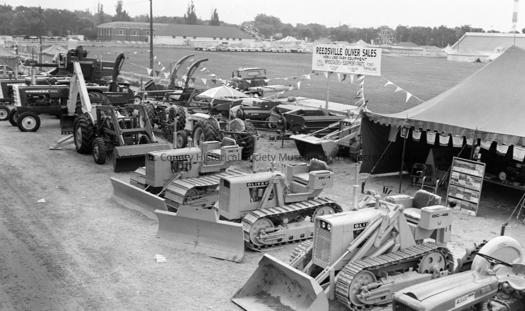 Manitowoc County Fair; Reedsville Oliver dealer of farm and construction equipment. Photograph taken in August 1963.Made/Created