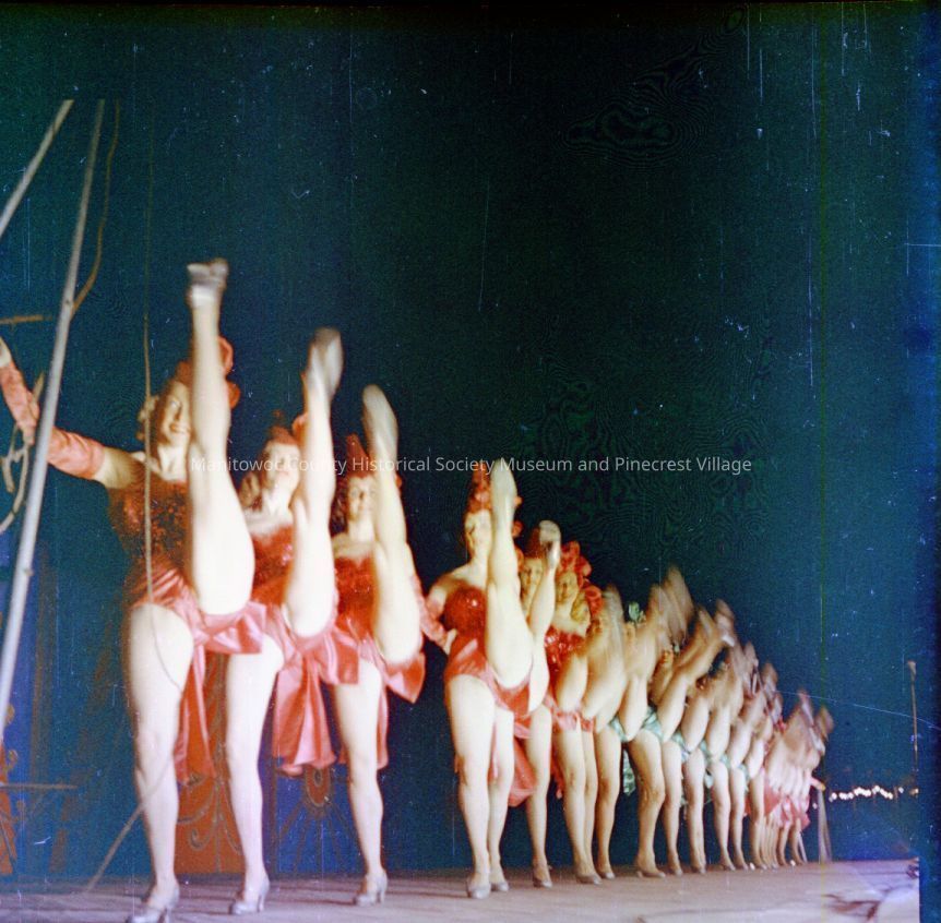 Manitowoc County Fair; chorus line of dancers. Photograph taken in 1954.