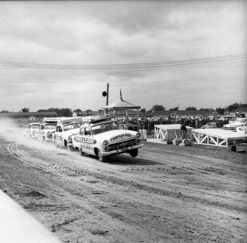 Manitowoc County Fair; Swensen Thrillcade auto show. Photograph taken on August 20th, 1952.