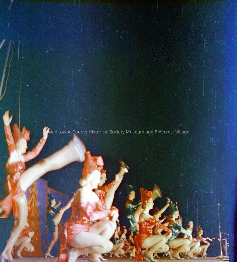 Manitowoc County Fair; chorus line of dancers. Photograph taken in 1954.