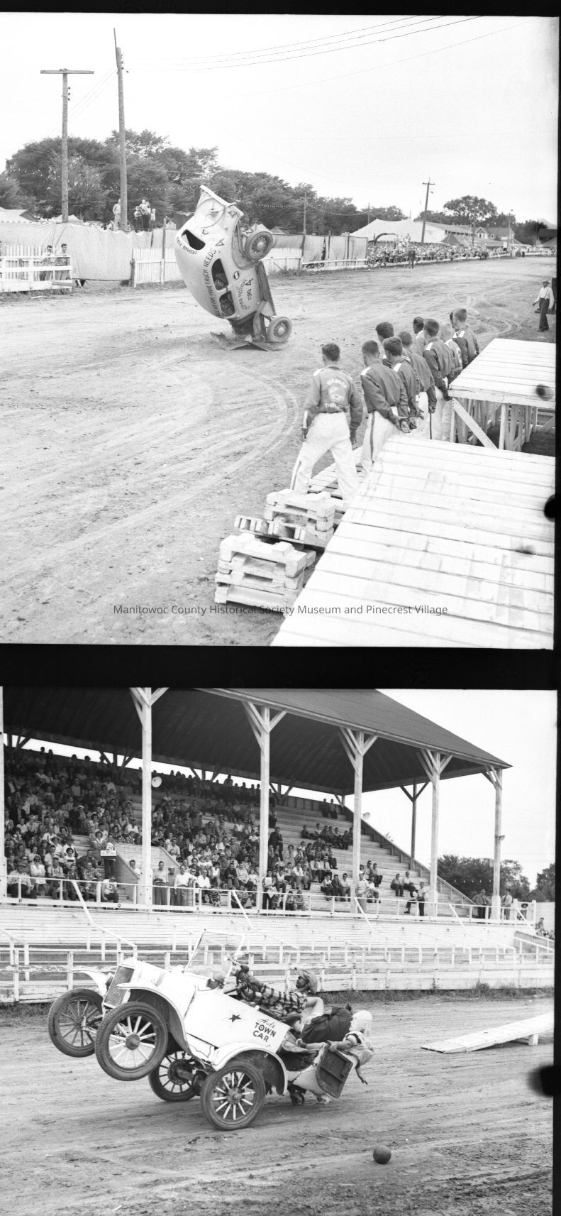 Manitowoc County Fair; Swensen Thrillcade auto show. Photograph taken on August 20th, 1952.
