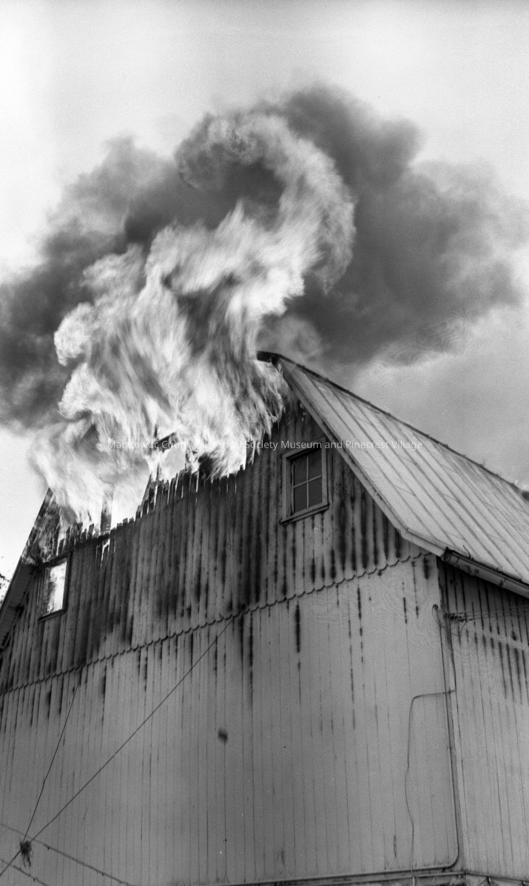 Manitowoc County Hospital; new at 4200 Calumet Ave Manitowoc; barn fire. Photograph taken on October 13th, 1961.Made/Created