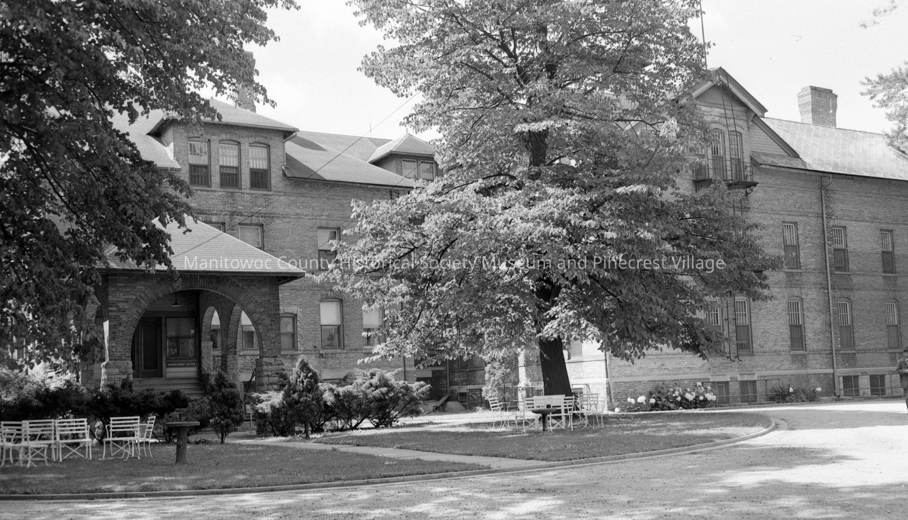 Manitowoc County Hospital; old insane asylum South 22rd & Hamilton Street Manitowoc, looking at north side. Photograph taken on July 6th, 1950.Made/Created