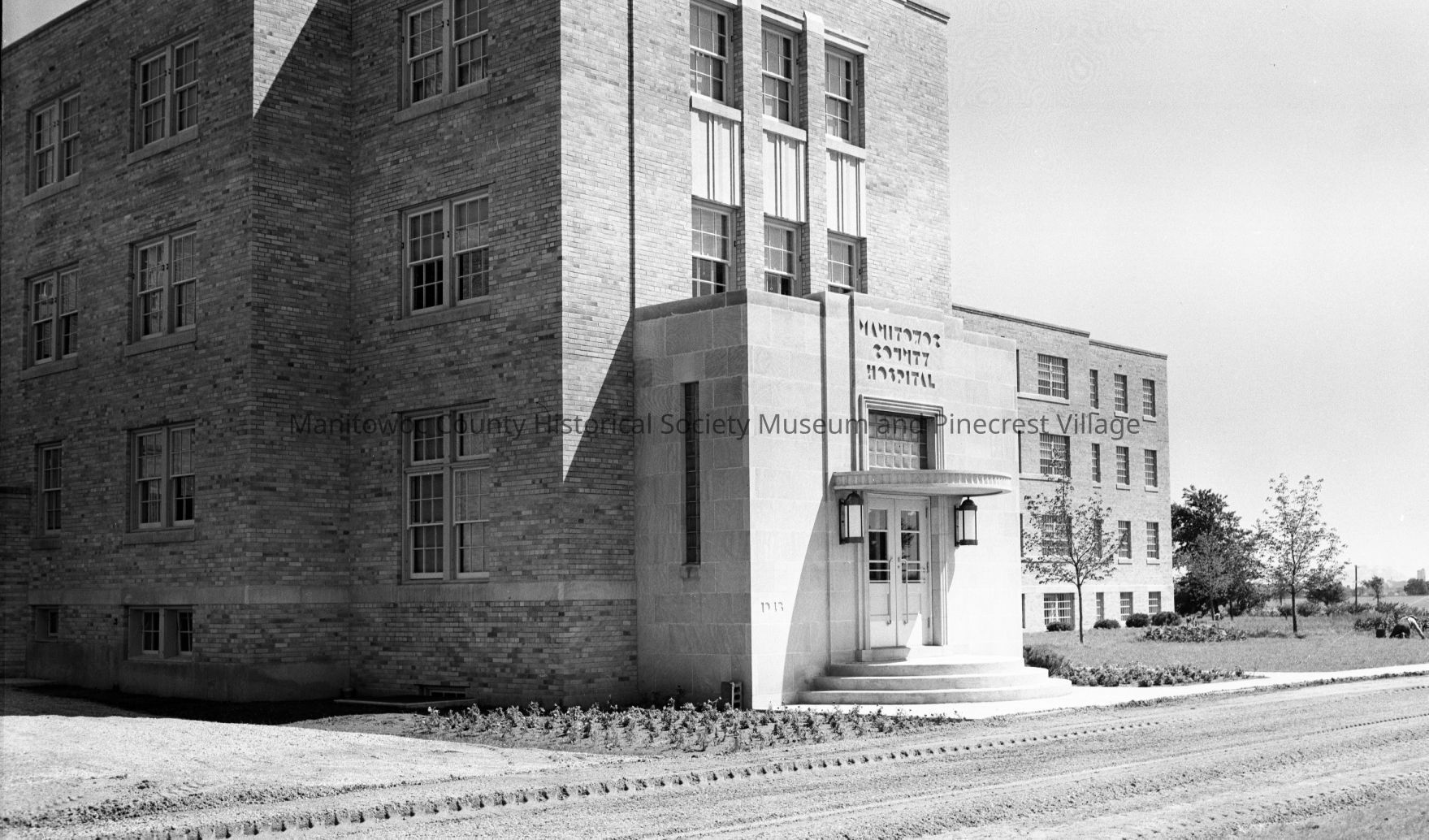 Manitowoc County Hospital; new at 4200 Calumet Ave Manitowoc; front entrance. Photograph taken in 1950.