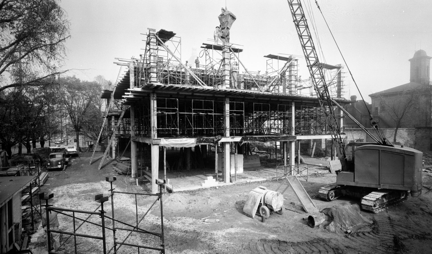 Manitowoc County Jail; at right is old courthouse at 1028 South 8th Street. Photograph taken on October 28th, 1960.Made/Created