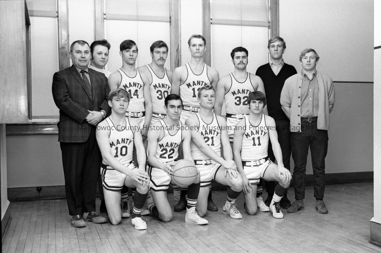 Manitowoc County Teachers' College; basketball team. Circa 1967.