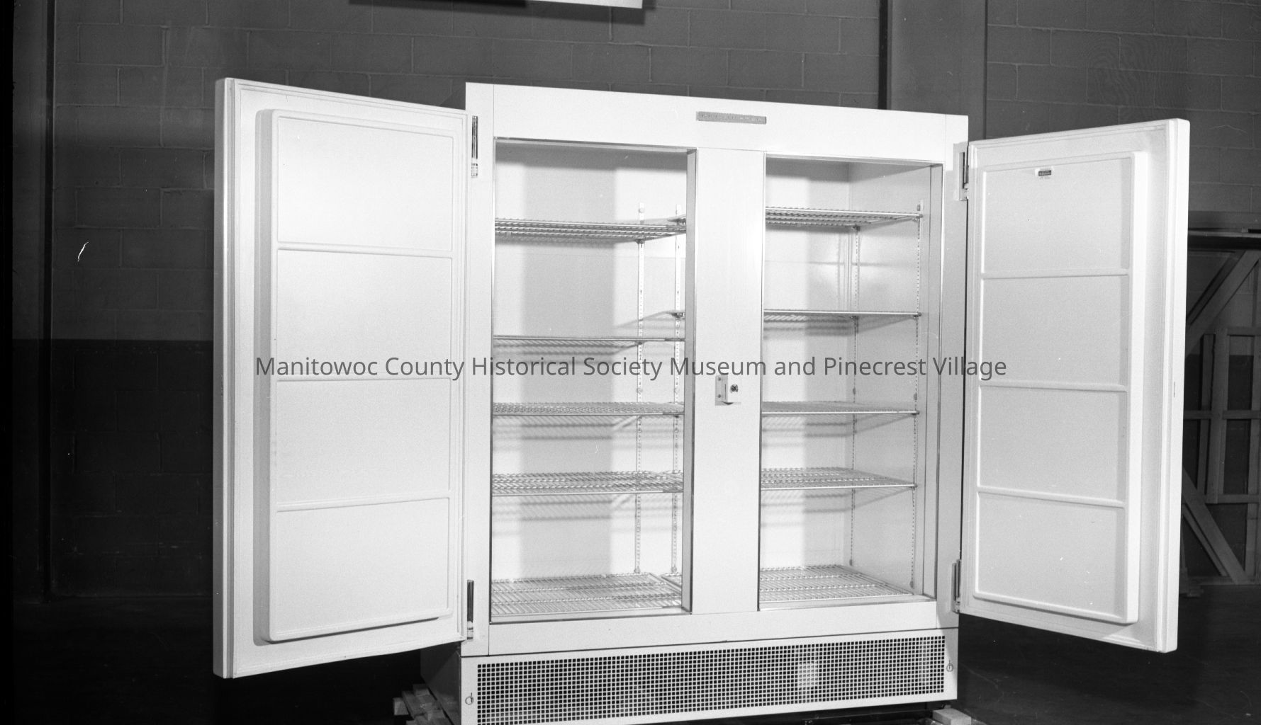 Manitowoc Equipment Works, 621 Quay Street Manitowoc; double door commercial refrigerator. Photograph taken on July 22nd, 1966.Made/Created