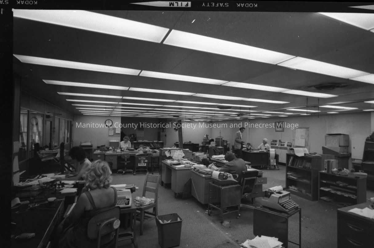 Manitowoc Herald Times newspaper editorial office at 902 Franklin Street in Manitowoc. Photograph taken on July 7th, 1975.Made/Created