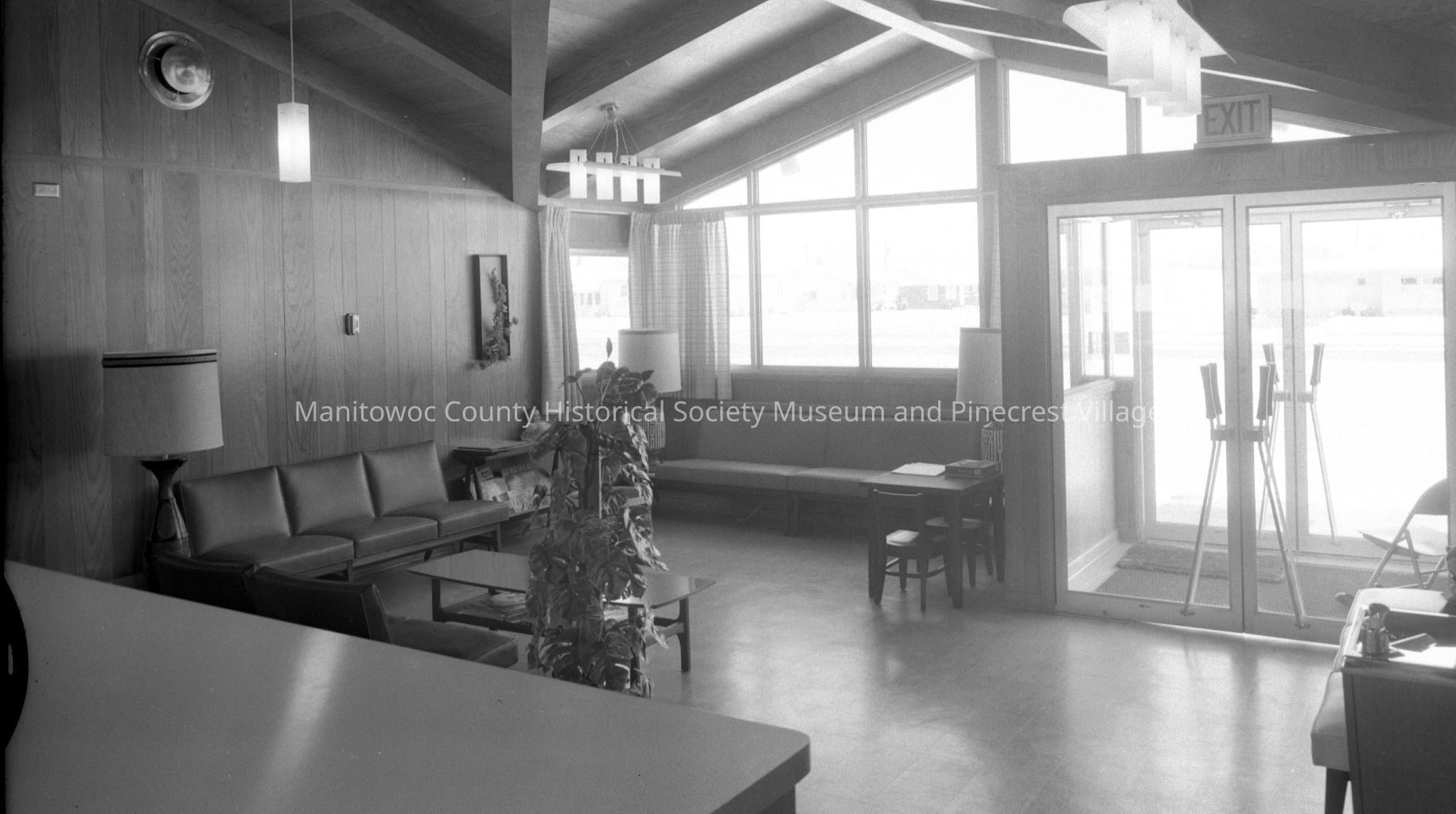 Manitowoc Mental Health Center, 339 Reed Ave Manitowoc; looking at front entrance from waiting room. Photograph taken on April 20th, 1963.Made/Created