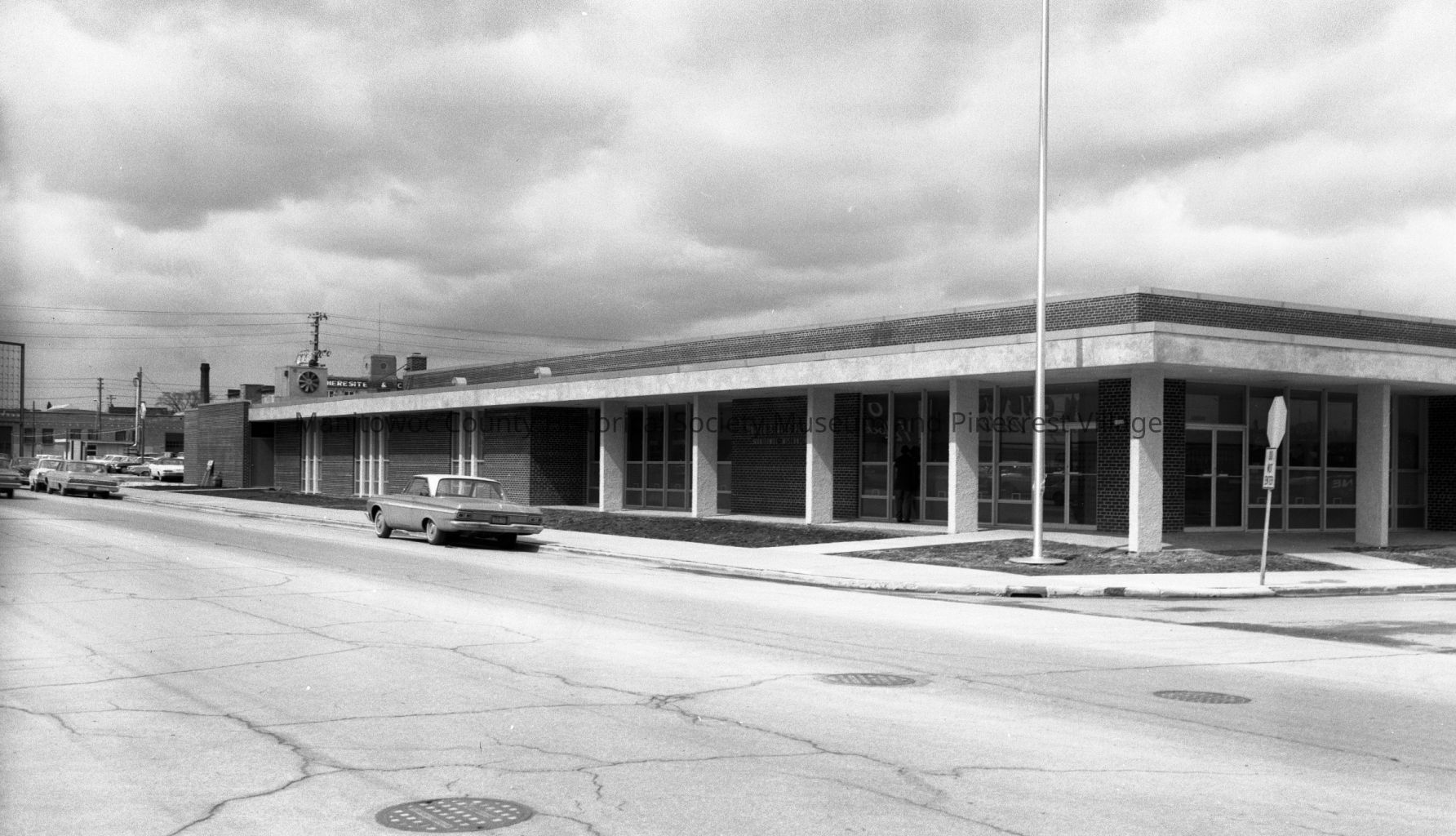 Manitowoc Post Office, 1202 Franklin Street Manitowoc; main entrance. Photograph taken in March 1965.