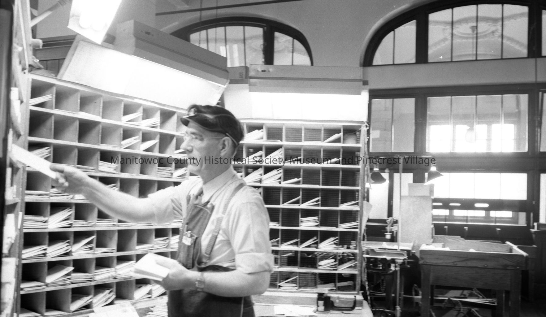Manitowoc Post Office, 901 Franklin Street Manitowoc; sorting room. Photograph taken on December 5th, 1955.Made/Created