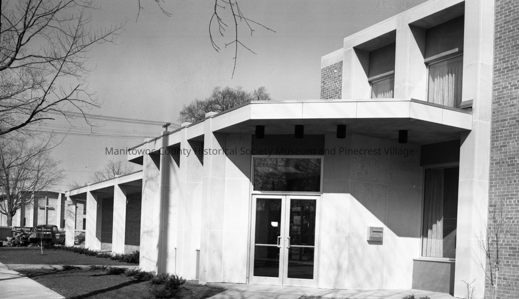 Manitowoc Public Library, 808 Hamilton Street; main entrance. Photograph taken in April 1967.