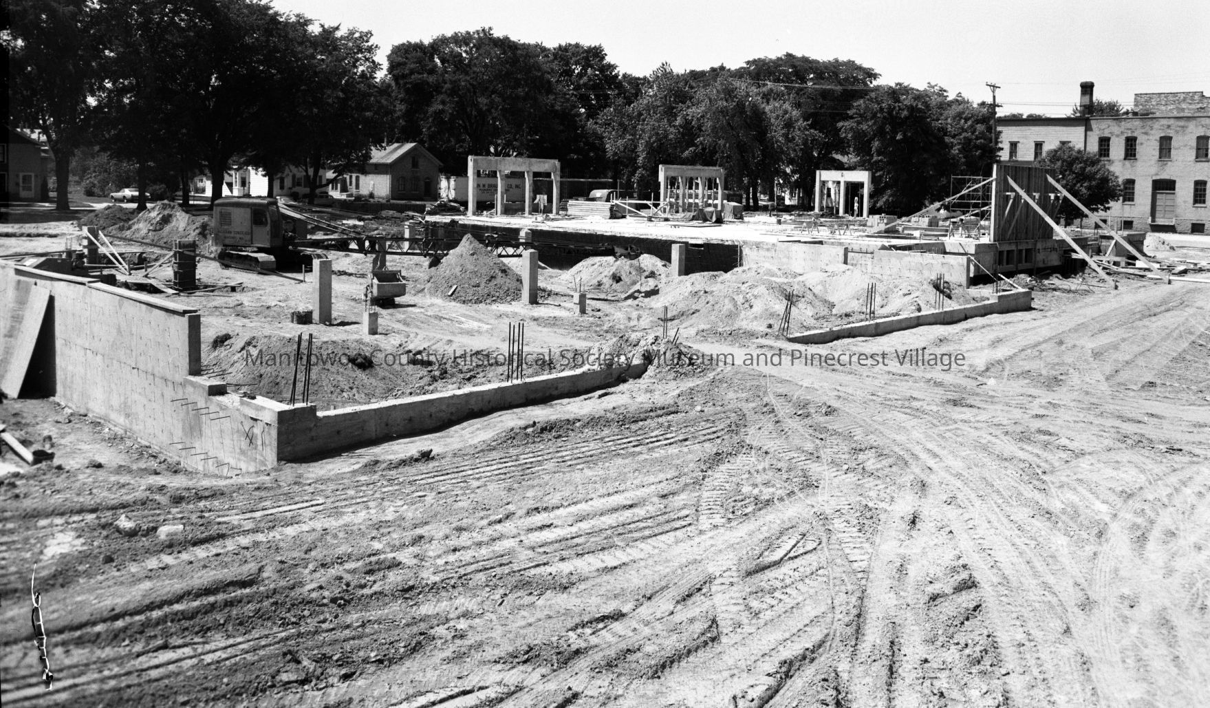Manitowoc Public Utilities, 621 Columbus Street Manitowoc; progress on new building at 1300 block South 8th Street looking northwest with large building left is A.W. Richter vinegar plant, 710 Madison Street. Photograph taken on July 13th, 1969.Made/Created