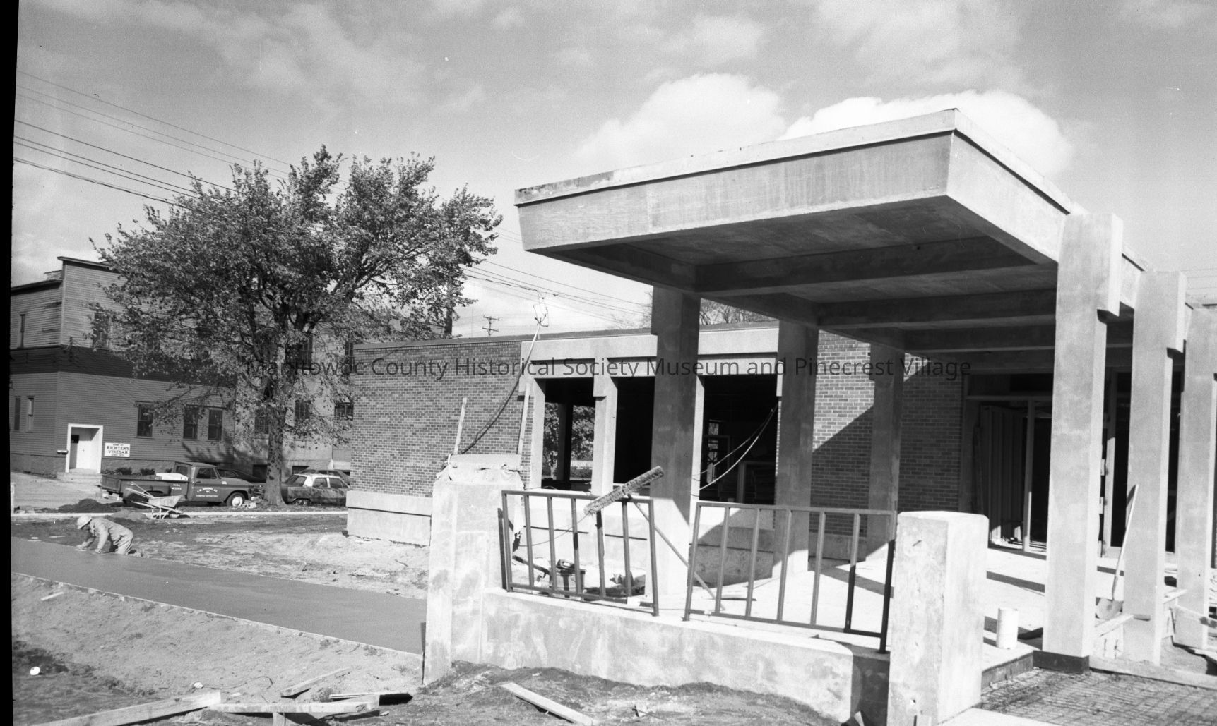 Manitowoc Public Utilities, 621 Columbus Street Manitowoc; progress on new building at 1300 block South 8th Street, looking at front entrance. Photograph taken on October 14th, 1969.Made/Created