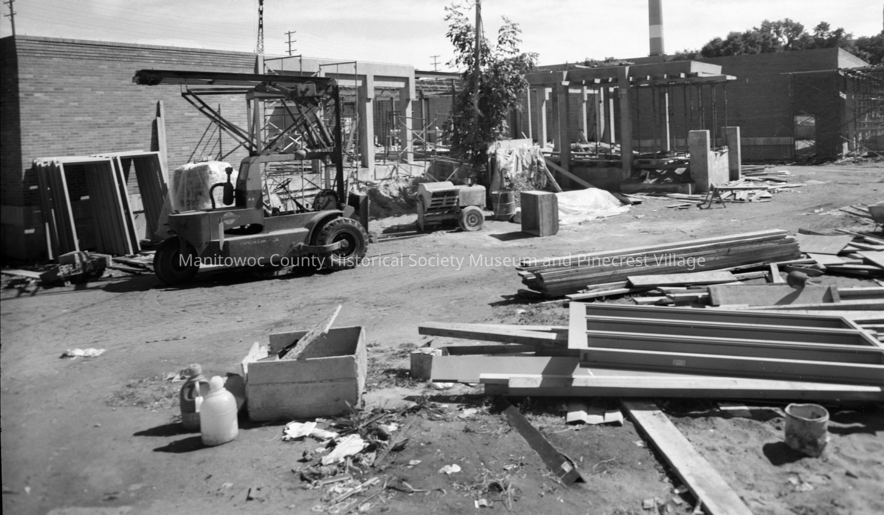 Manitowoc Public Utilities, 621 Columbus Street Manitowoc; progress on new building at 1300 block South 8th Street, looking south with Lincoln High School tower at right. Photograph taken on September 1st, 1969.Made/Created