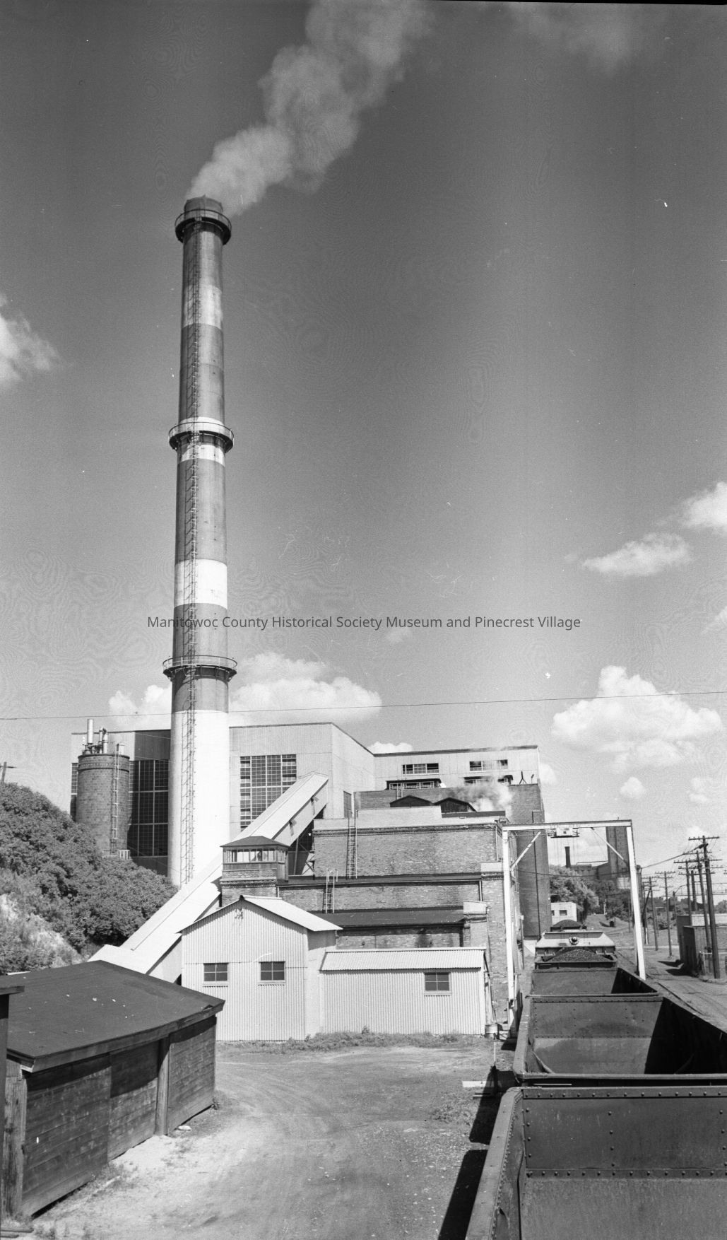 Manitowoc Public Utilities, 621 Columbus Street Manitowoc; looking at south end and the coal unloading area. Photograph taken in August 1956.Made/Created