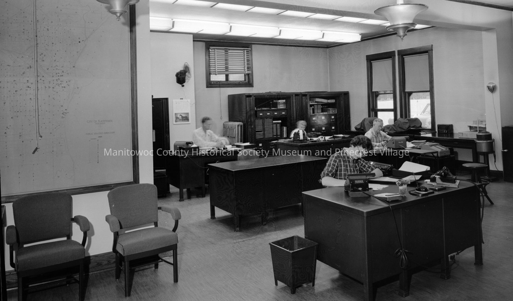 Manitowoc Public Utilities, 621 Columbus Street Manitowoc; main office. Photograph taken in August 1956.Made/Created
