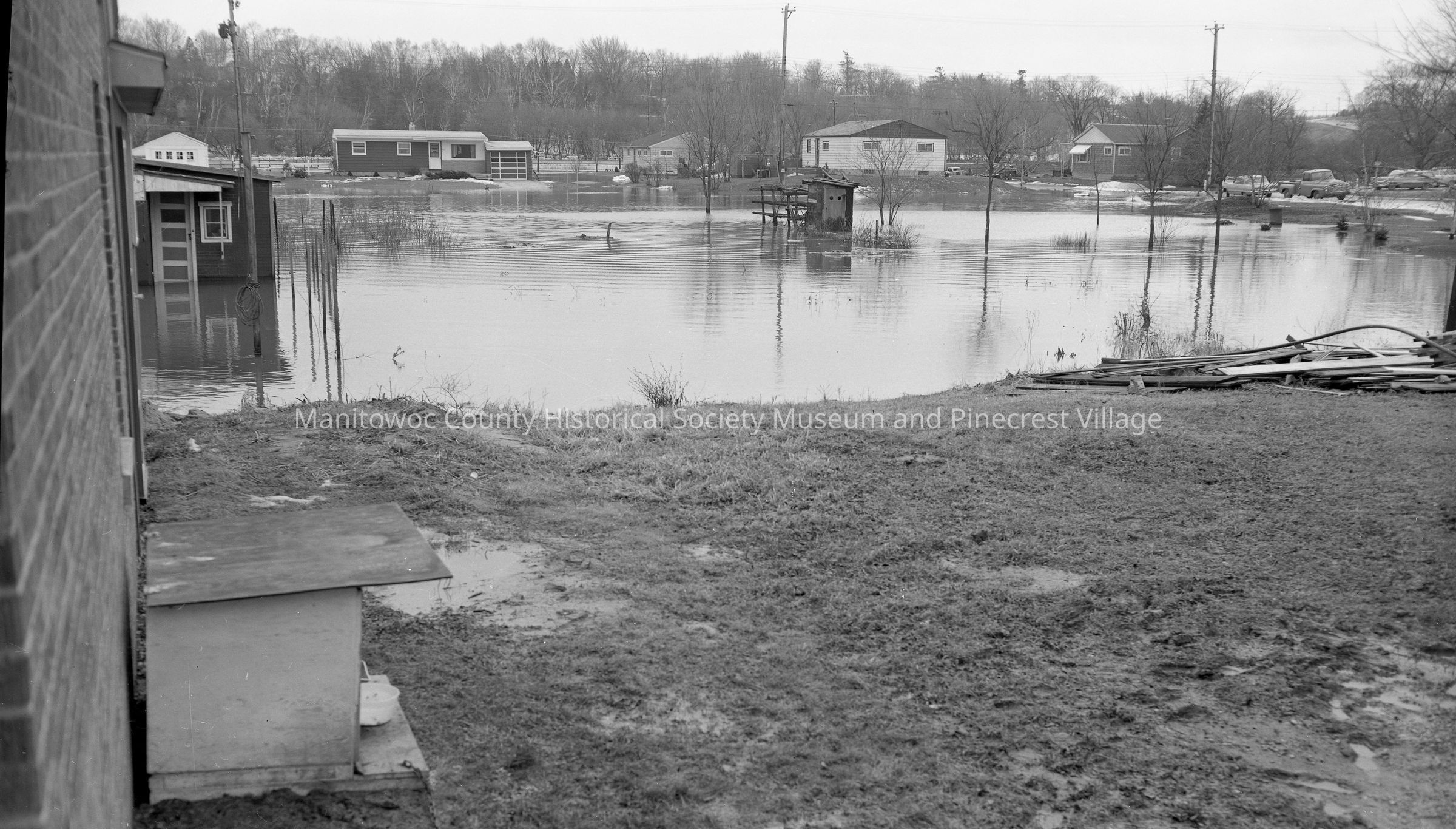 Manitowoc Rapids flooding from early thaw. Photograph taken on February 9th, 1966.