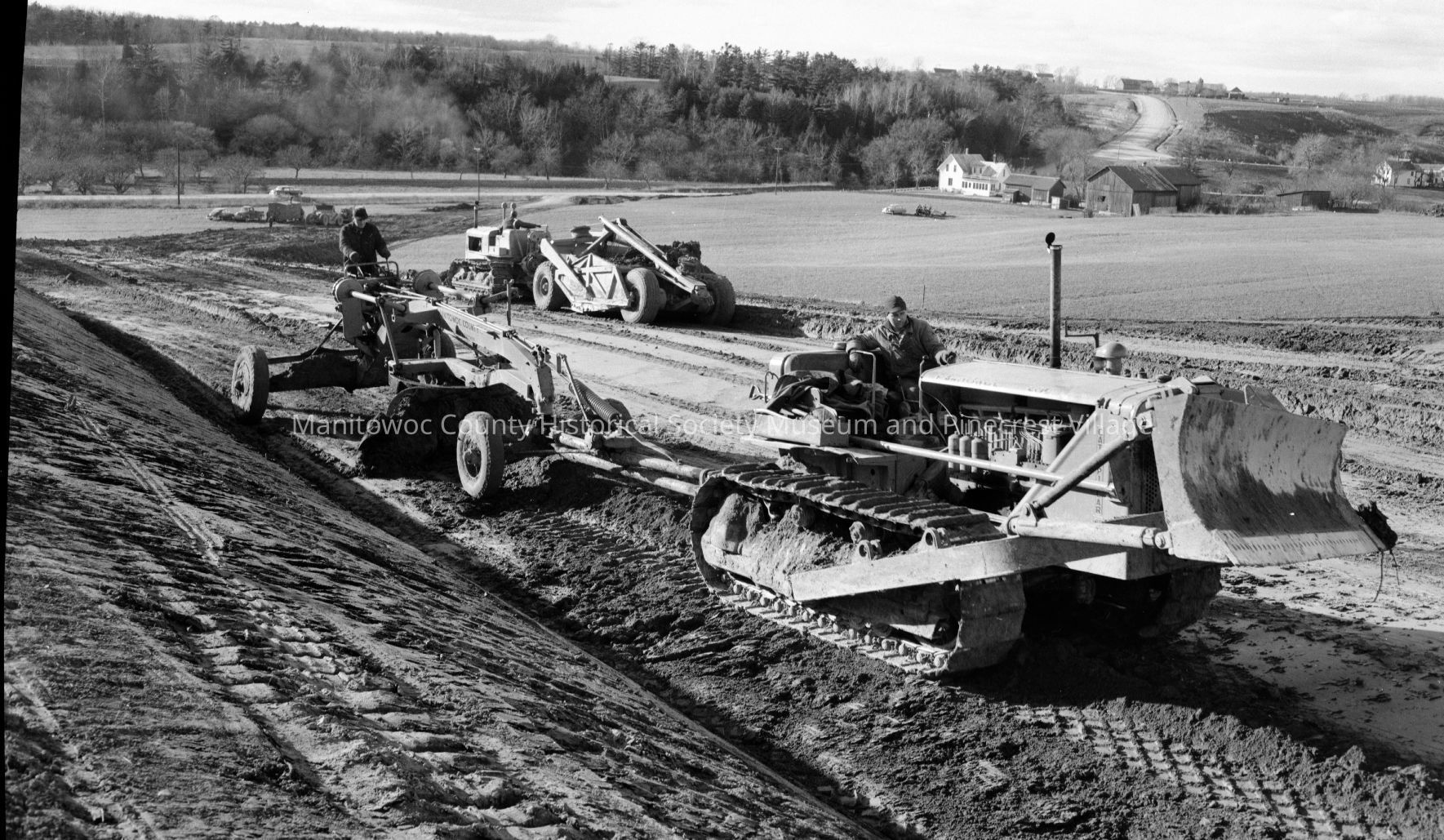 Manitowoc Rapids; Michigan Ave being extended to join Broadway Street. The farm in distance is the Heinrich place looking southwest. Photograph taken on November 22nd, 1954.Made/Created
