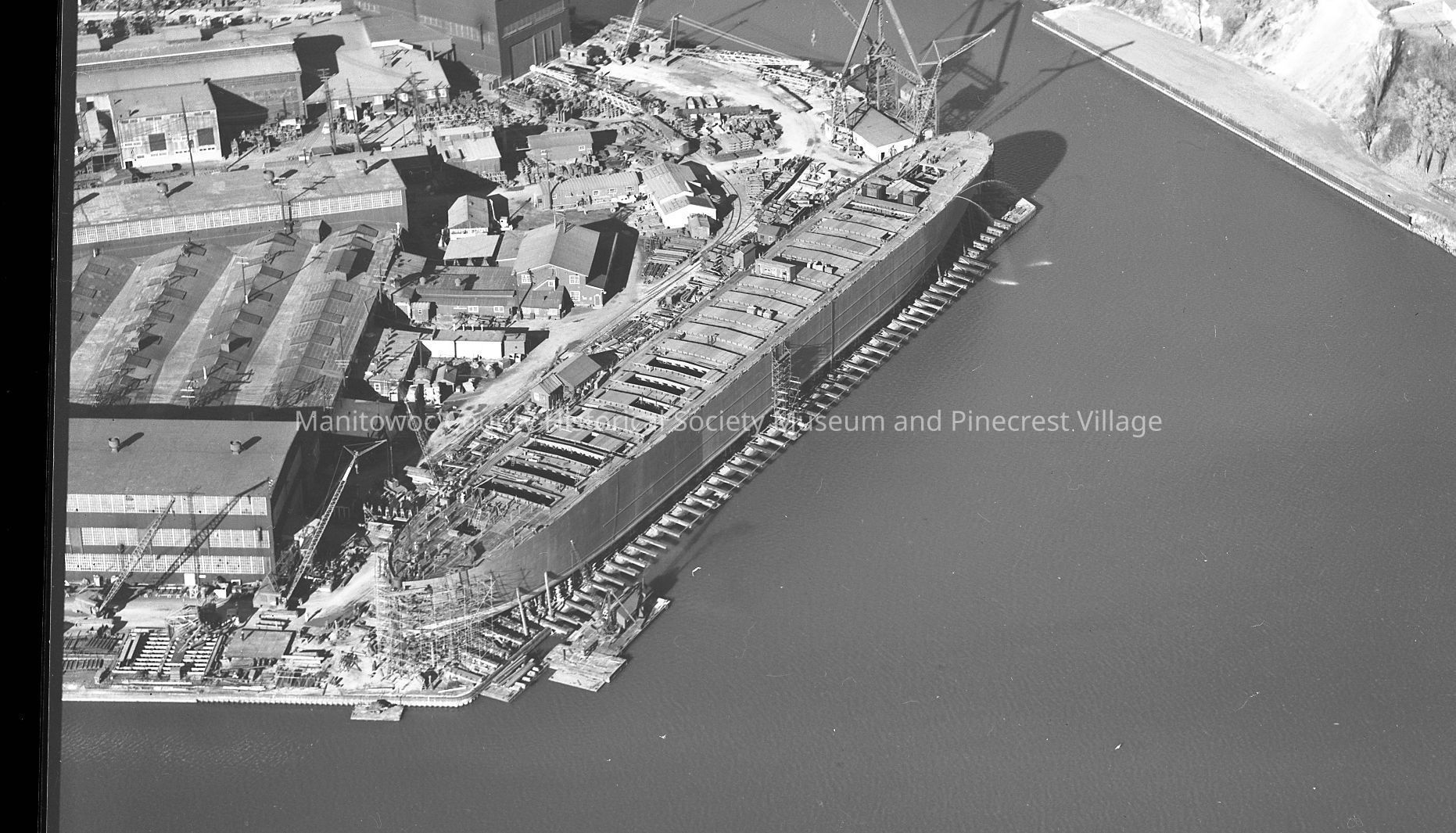 Aerial view of the Manitowoc Shipbuilding and progress on Adam E. Cornelius. Photograph taken on November 17th, 1958.Made/Created