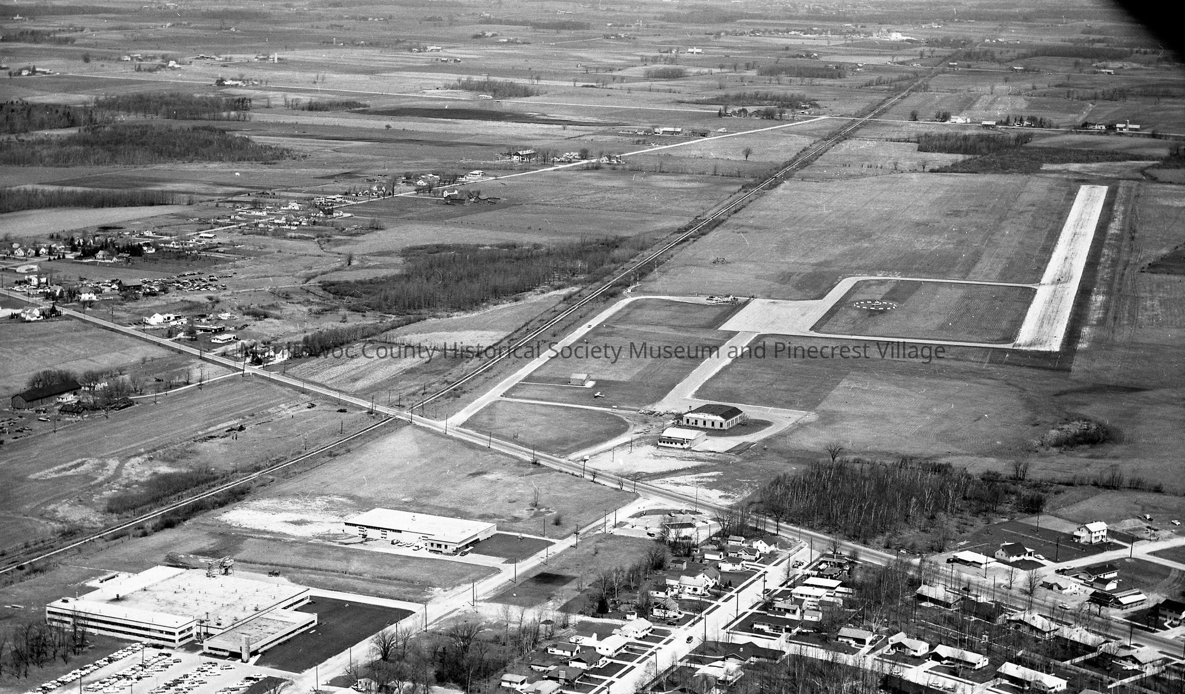 Aerial: Northwest corner of Manitowoc. County Airport is center with Menasha Ave. At lower left is Granger Soft Water Mfg, 1520 North 24th street and Imperial Eastman Corporation, 1440 North 24th street.
