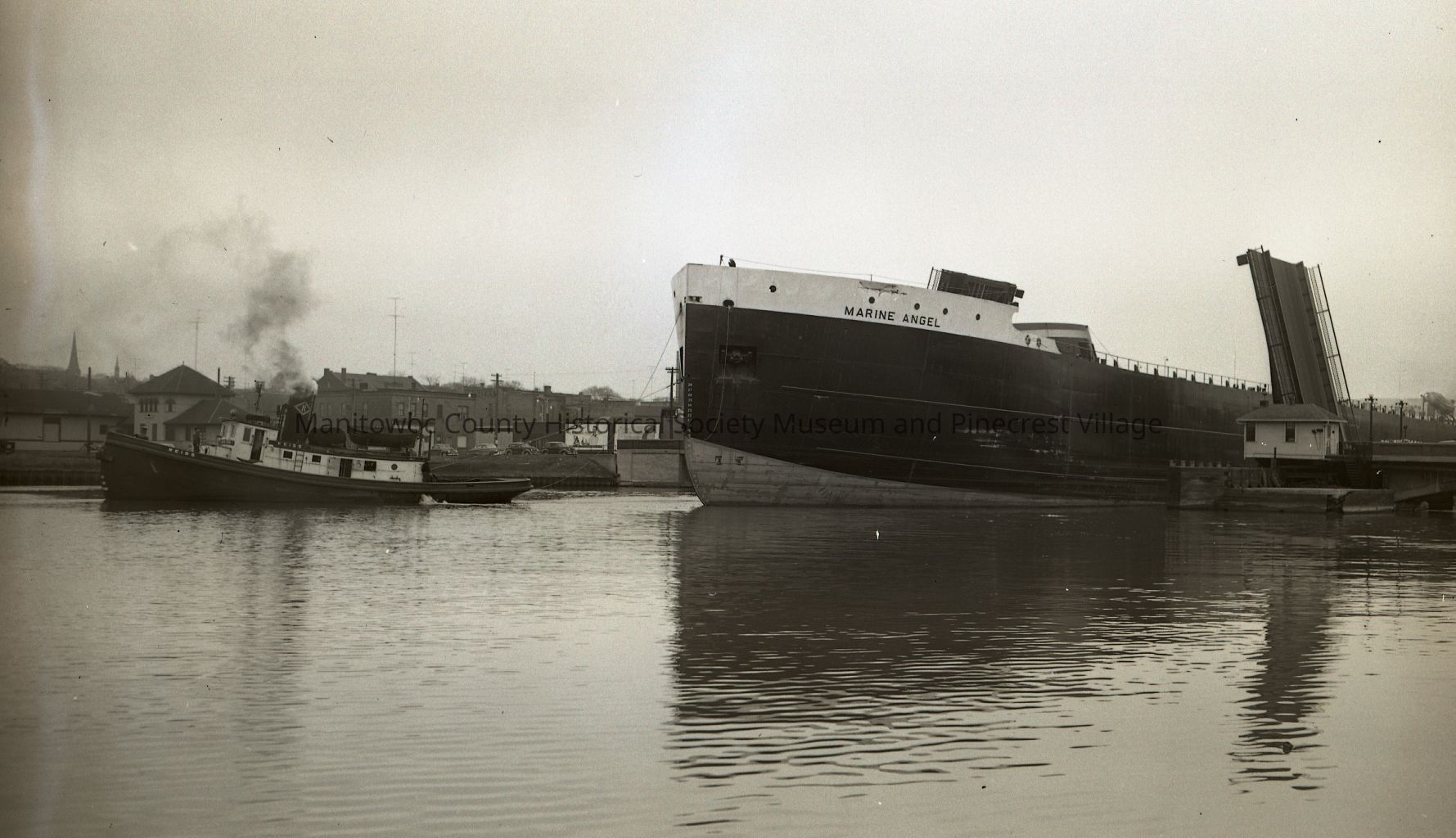 Marine Angel being towed through the 10th Street bridge. Photograph taken March 12th, 1953.
