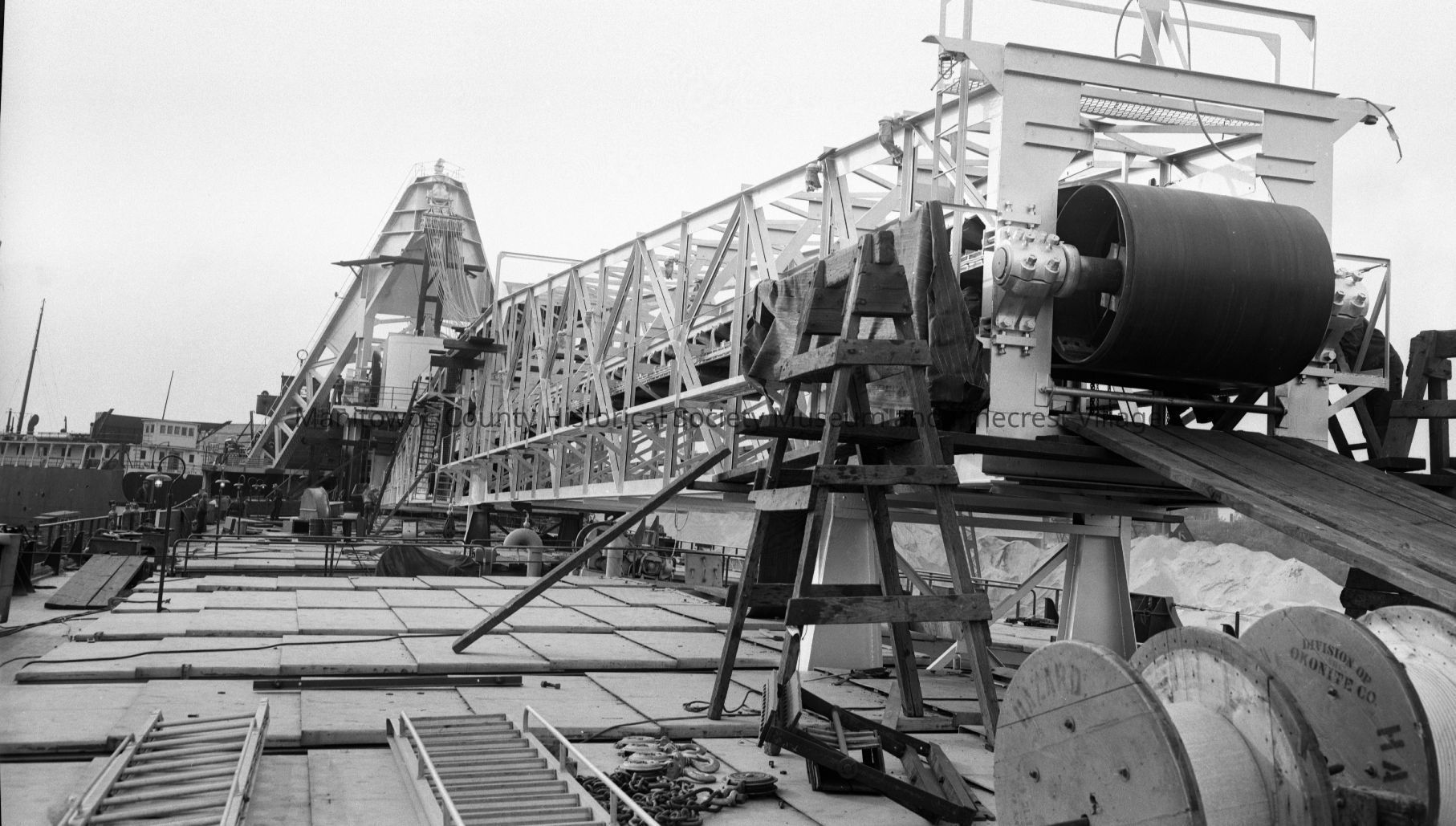 The McKee Sons ore boat getting a new unloading belt at Manitowoc Shipbuilding. Photograph taken on October 14th, 1953.Made/Created