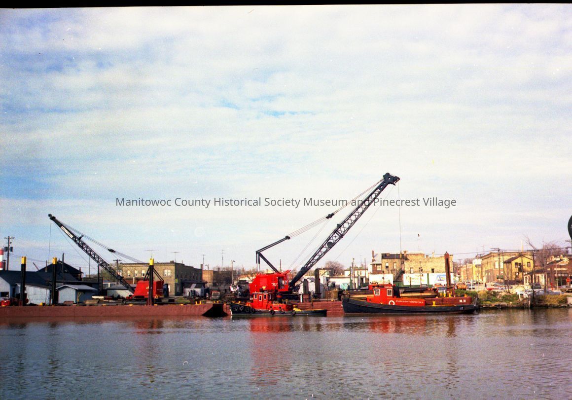McMullen & Pitz, Commercial Street yard, Manitowoc. Looking from across river. Photograph taken in 1971.
