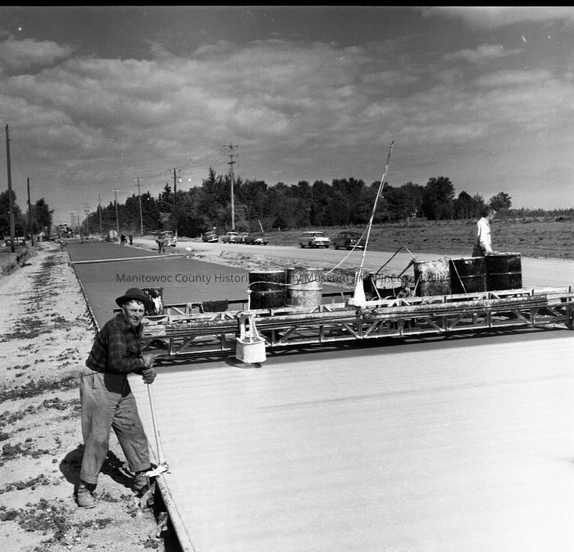 Memorial Drive; groove & tar machine working on new highway. Photograph taken in October 1962.