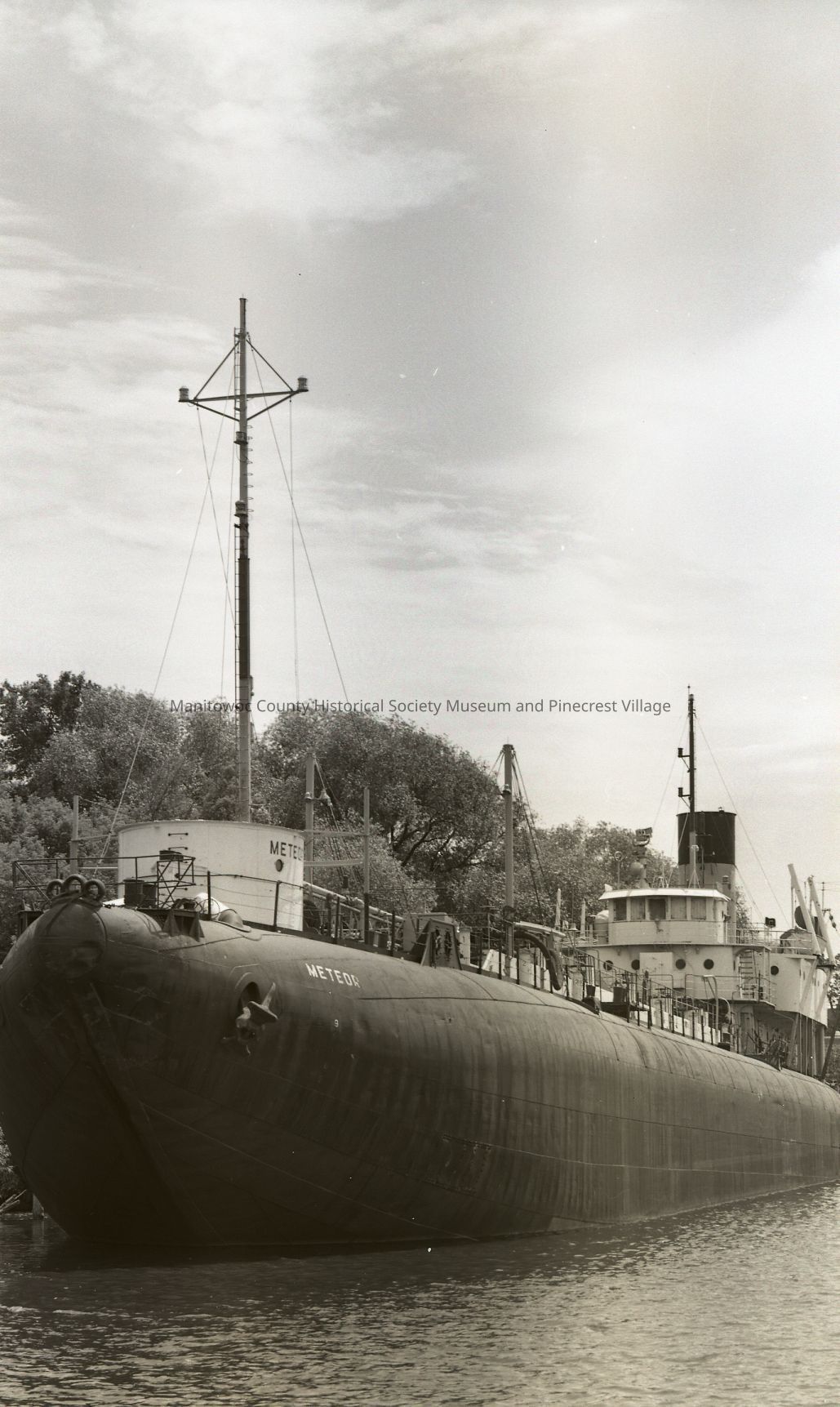 Whaleback tanker Meteor docked in Manitowoc looking bow on. It is now a museum at Superior, WI. Photograph taken in June 1972.Made/Created