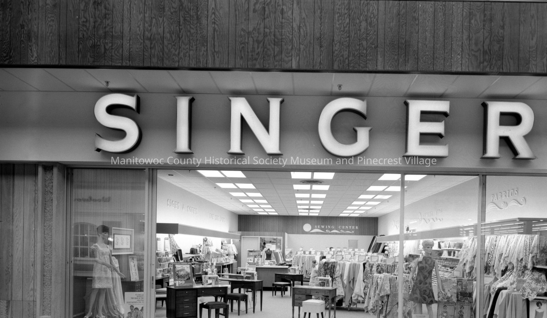 Mid-Cities Mall, 828 Memorial Drive Manitowoc; entrance to Singer Sewing Center. Photograph taken on April 19th, 1968.Made/Created