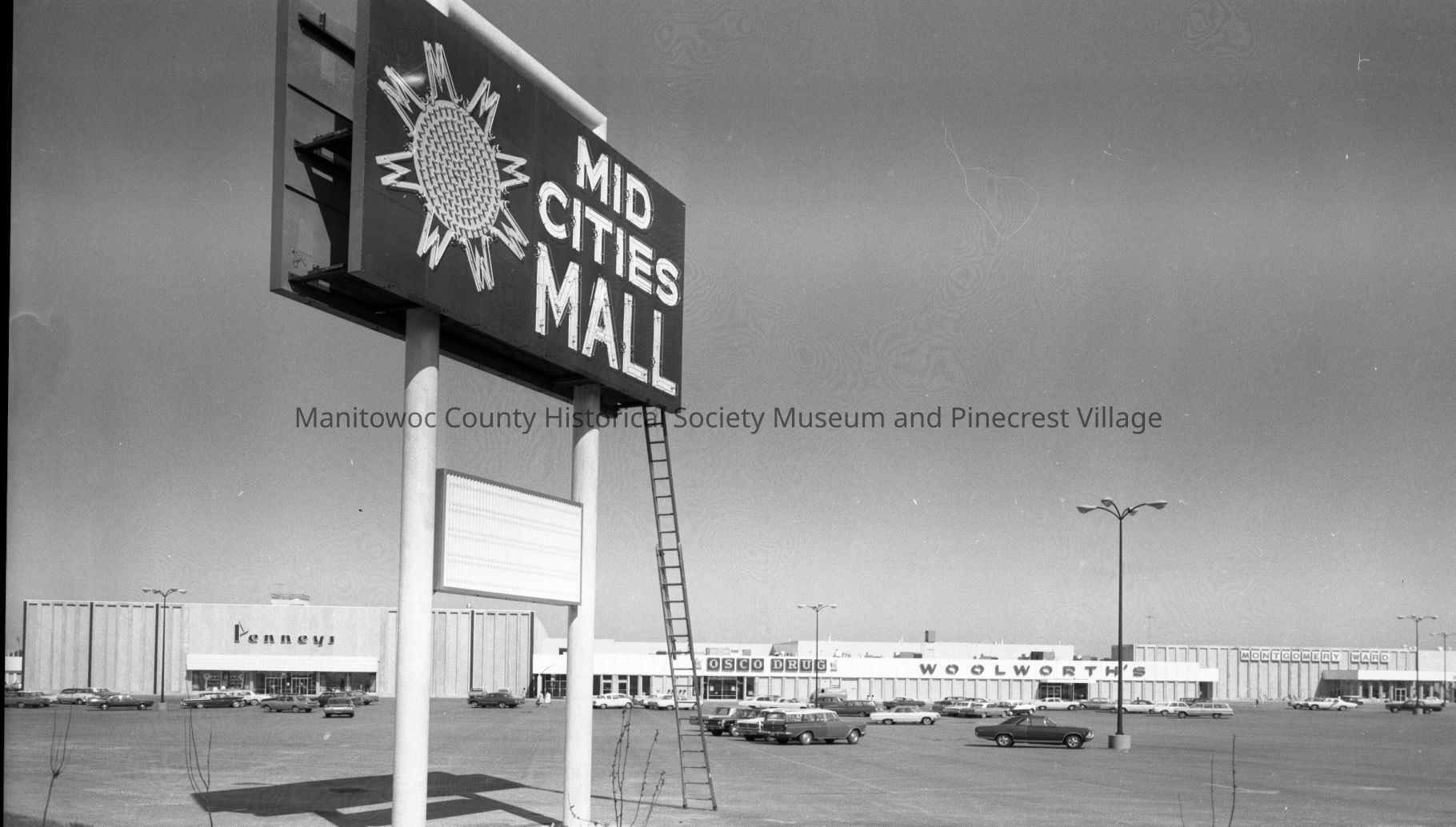 Mid-Cities Mall, 828 Memorial Drive Manitowoc - looking at east and south side of mall. Photograph taken in 1969.