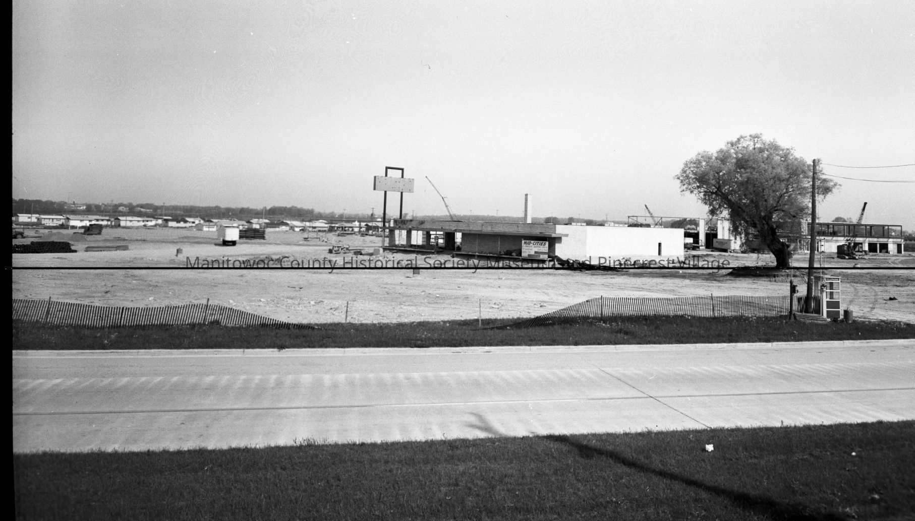 Mid-Cities Mall, 828 Memorial Drive Manitowoc; construction work looking from Memorial Drive with old Krambo Super Market still standing. Photograph taken on June 2nd, 1967.Made/Created