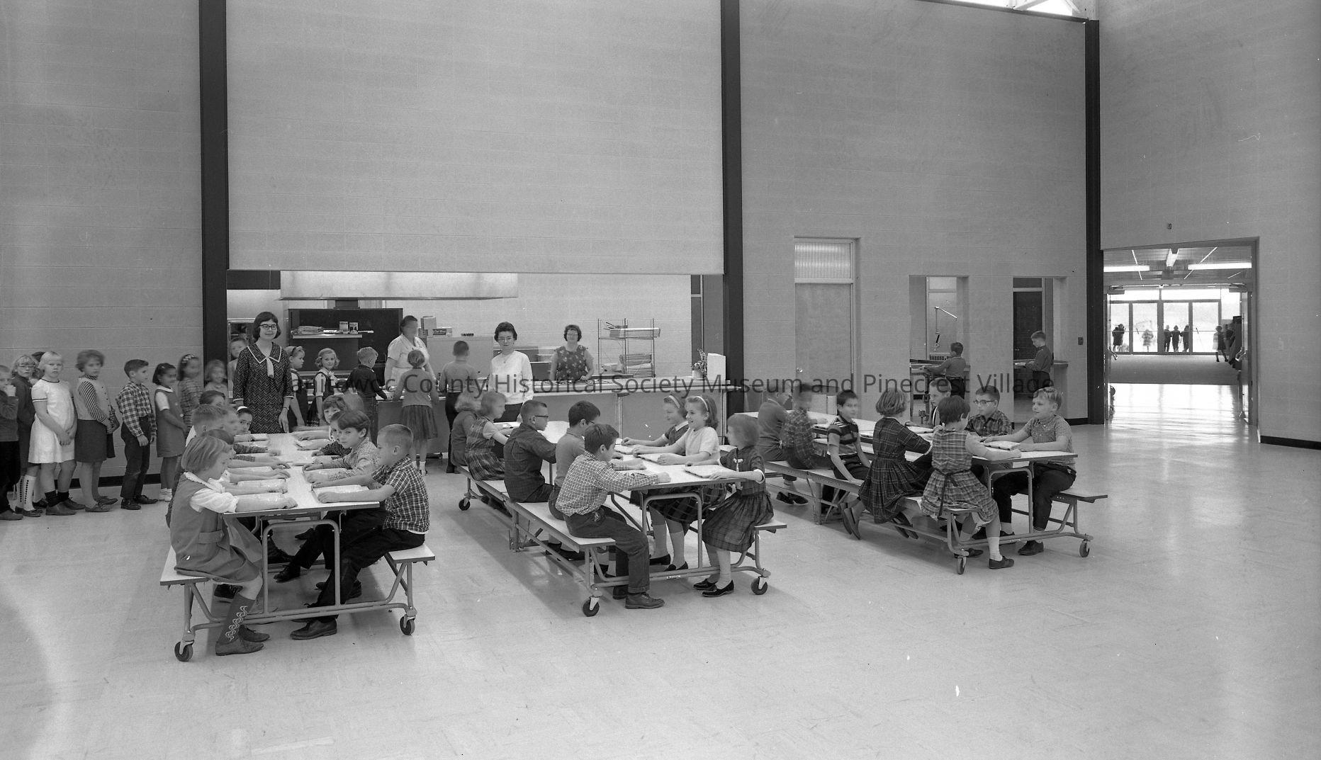 Cafeteria in gym of Mishicot elementary school. Photograph taken on October 26th, 1965.