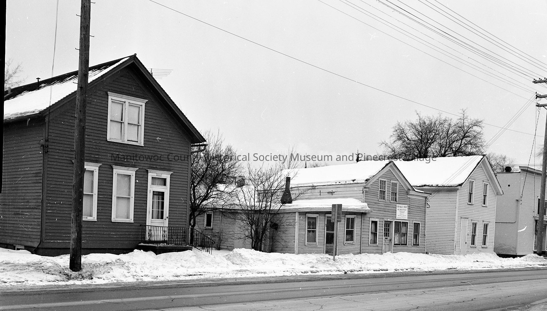 Muchin junk yard; 1100 block South 10th Street Manitowoc: left to right, 1117 Ida Muchin, 1121, 1123 MUchin Second Hand, 1127 Grall's Meat Market. Photograph taken on February 14th, 1971.Made/Created