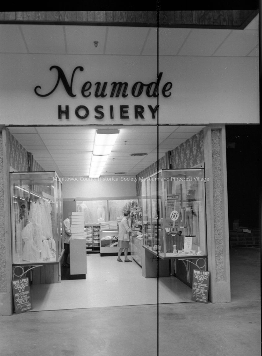 Mid-Cities Mall, 828 Memorial Drive Manitowoc; entrance to Neumode Hoaiery. Photograph taken on May 15th, 1968.Made/Created