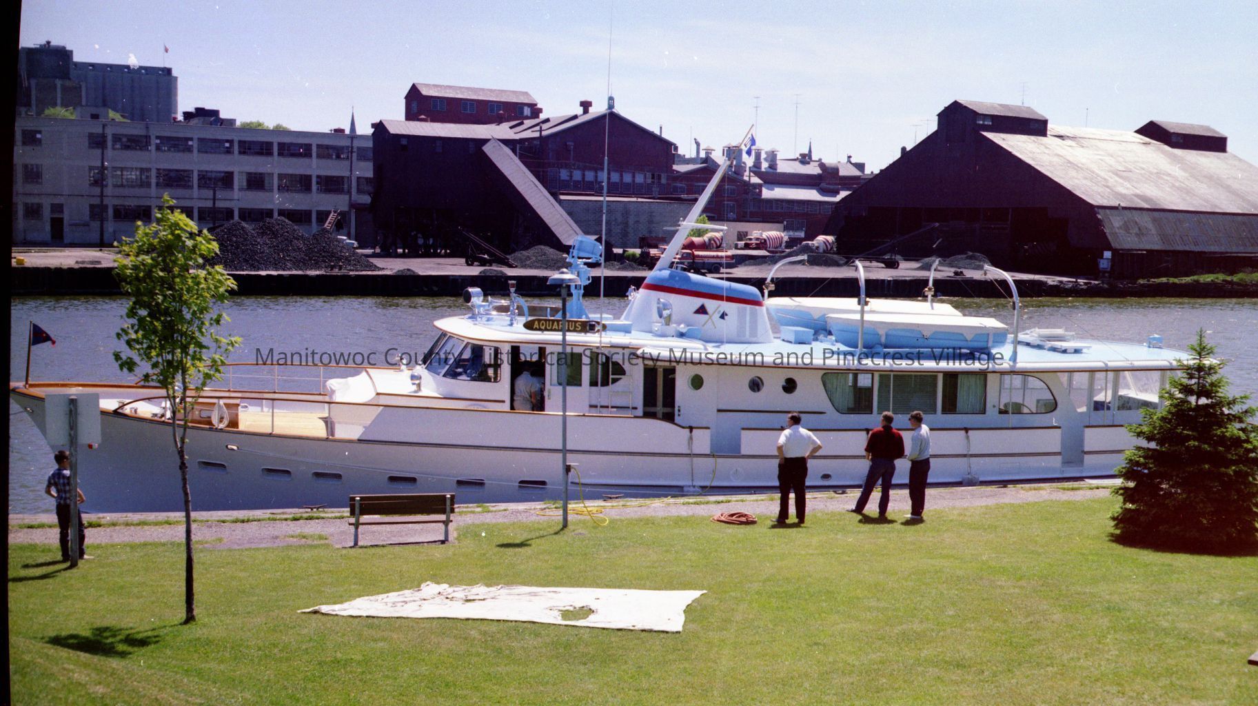 New Burger yacht dock at Commercial Street Manitowoc. In back are Spindler coal sheds, 720 Quay Street. Photograph taken in June 1965.Made/Created