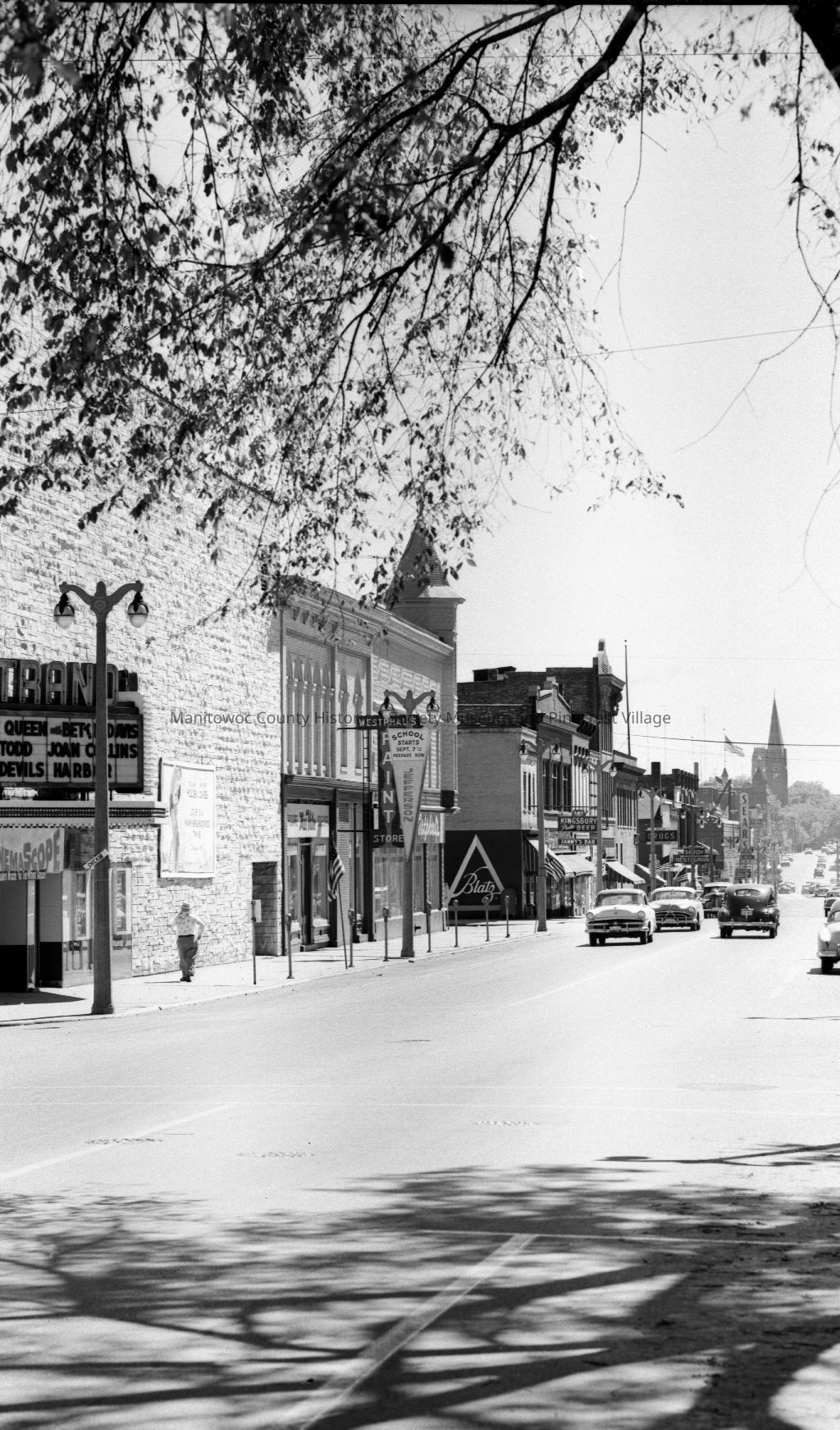 North 8th & Chicago Street Manitowoc looking south. At left is Strand Theater, 315 Westphal Hardware, 301 and Hammy's Bar, 215 North 8th Street. Circa 1950.Made/Created