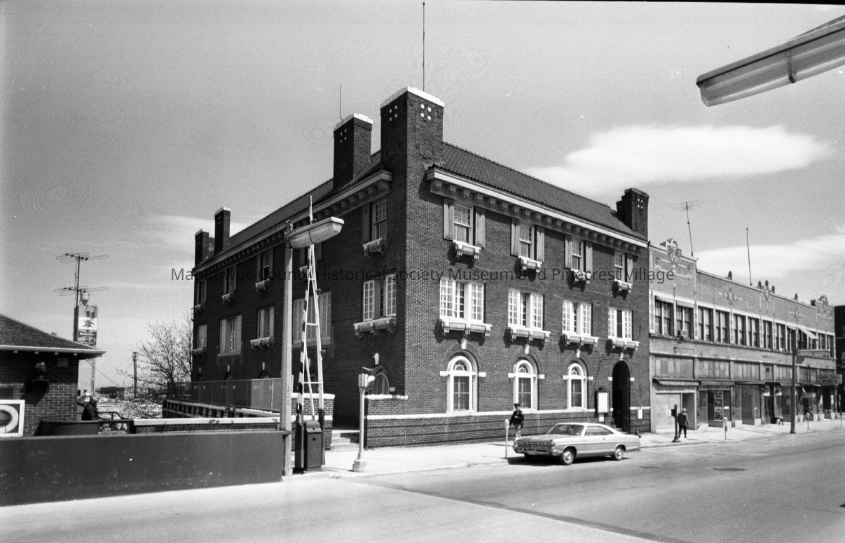 Looking at 8th Street 800 block east side of street Manitowoc. Old Elks Club will be torn down for small park & parking lot. Photograph taken in 1973.Made/Created