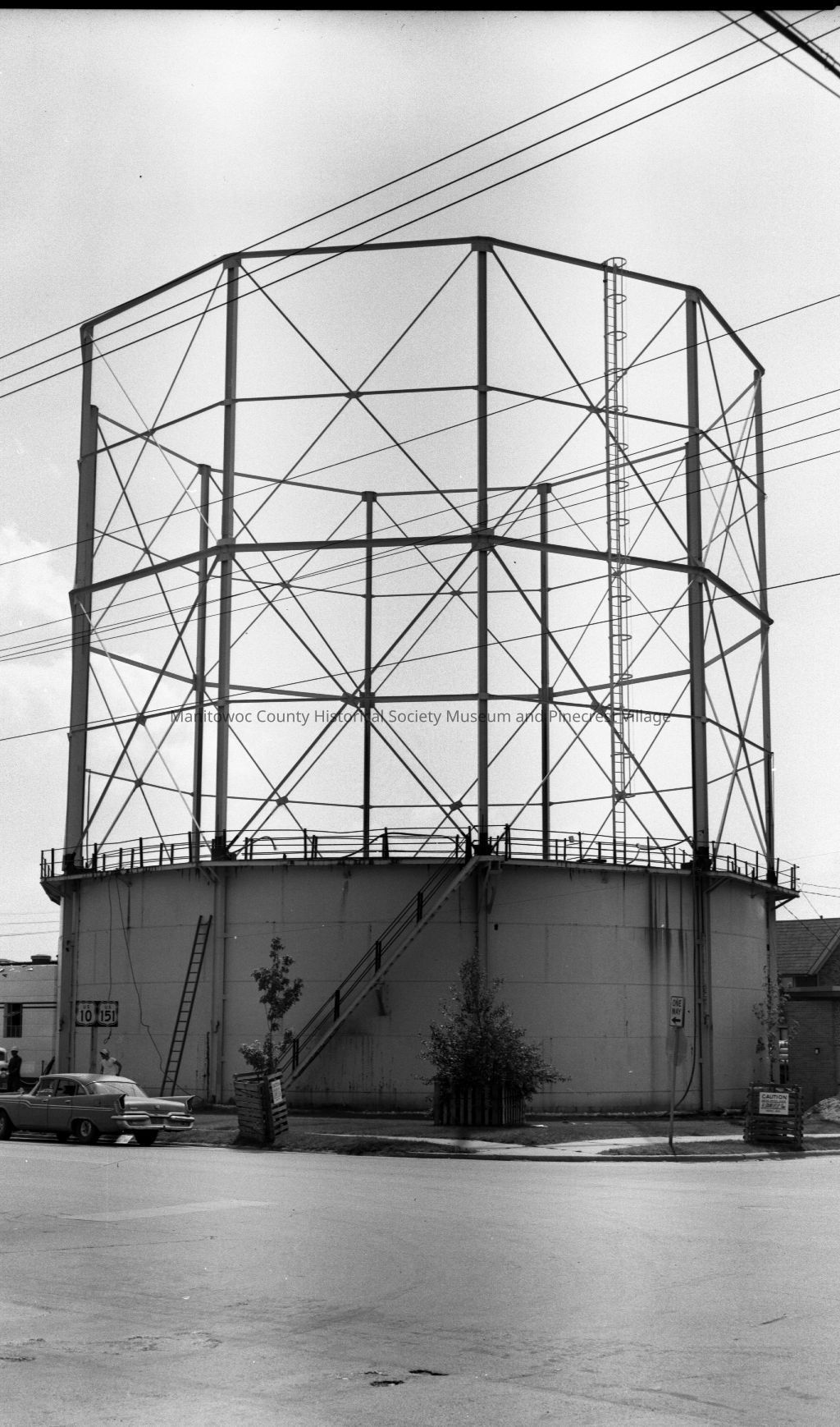 Old gas company storage tank, 300 block Manitowoc being torn down. Circa 1960.