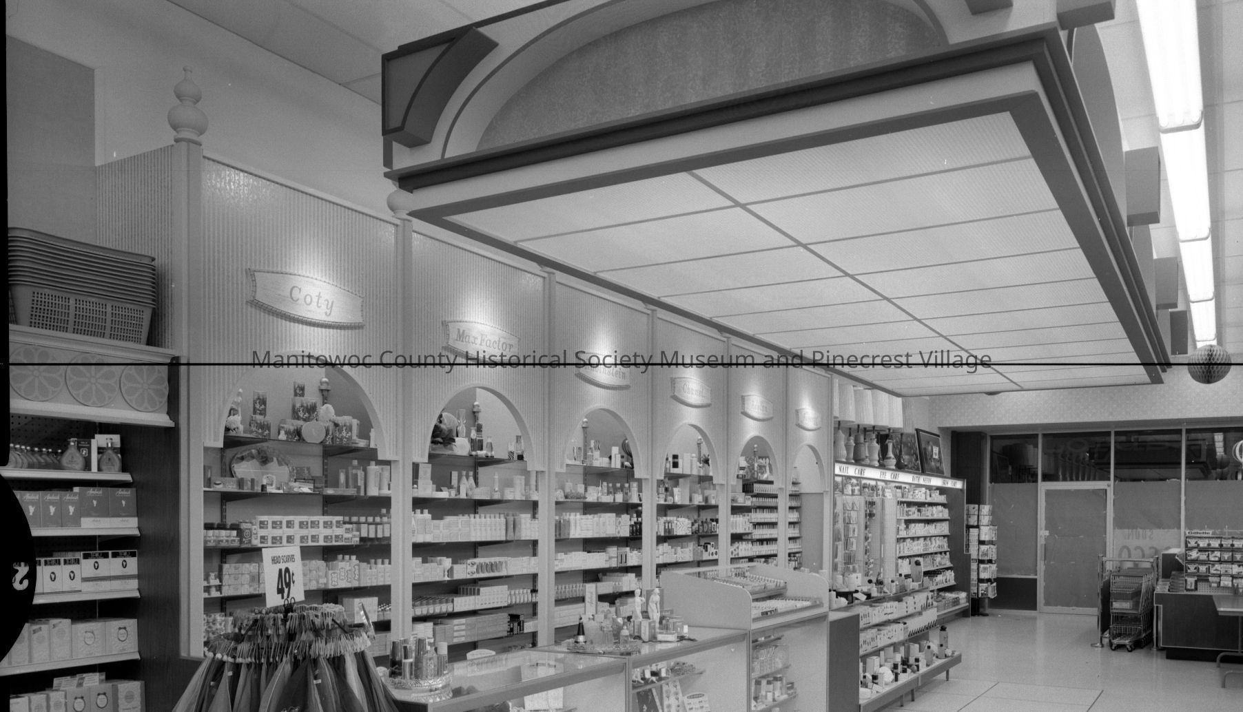 Mid-Cities Mall, 828 Memorial Drive Manitowoc; Osco Drug looking toward check-out and inside exit. Photograph taken on April 28th, 1968.Made/Created