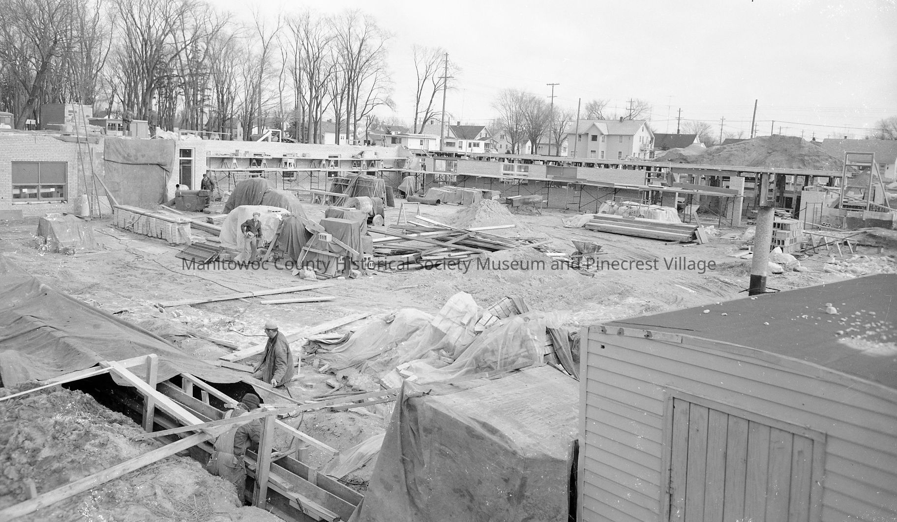 Park Lawn Nursing Home, 1308 South 22nd Street Manitowoc, foundation work near completion. Looking towards South 22nd & Hamilton Street. Photograph taken on January 14th, 1960.Made/Created