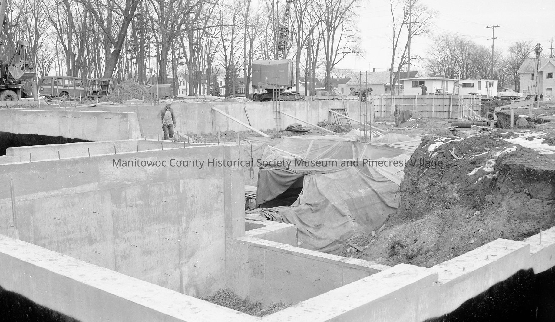 Park Lawn Nursing Home, 1308 South 22nd Street Manitowoc, foundation work looking Northeast towards corner of South 22nd & Hamilton Street. Photograph taken on December 3rd, 1959.Made/Created