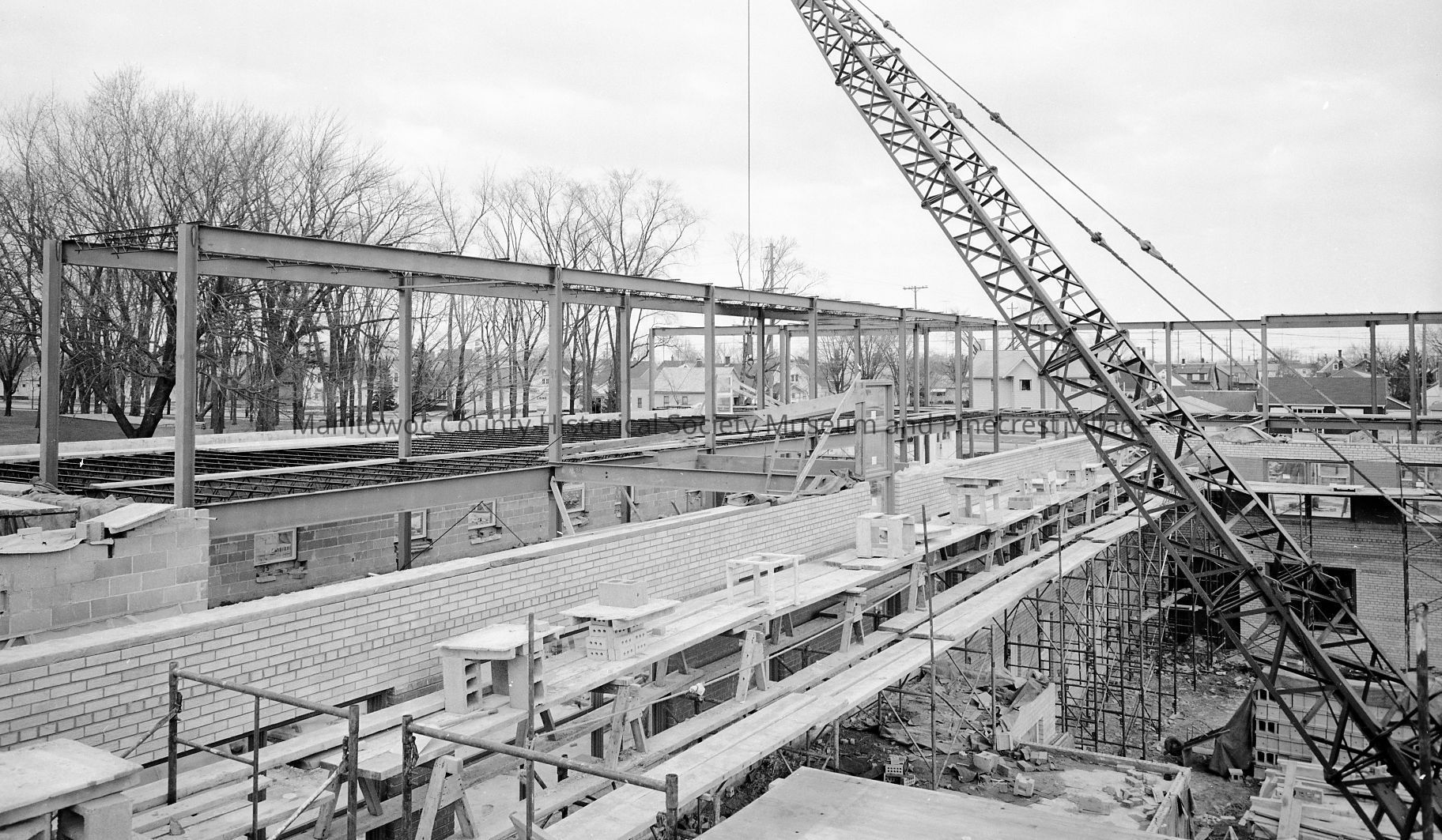 Park Lawn Nursing Home, 1308 South 22nd Street Manitowoc, wall and frame work progresses, looking northeast. Photograph taken on April 3rd, 1960.Made/Created